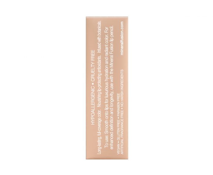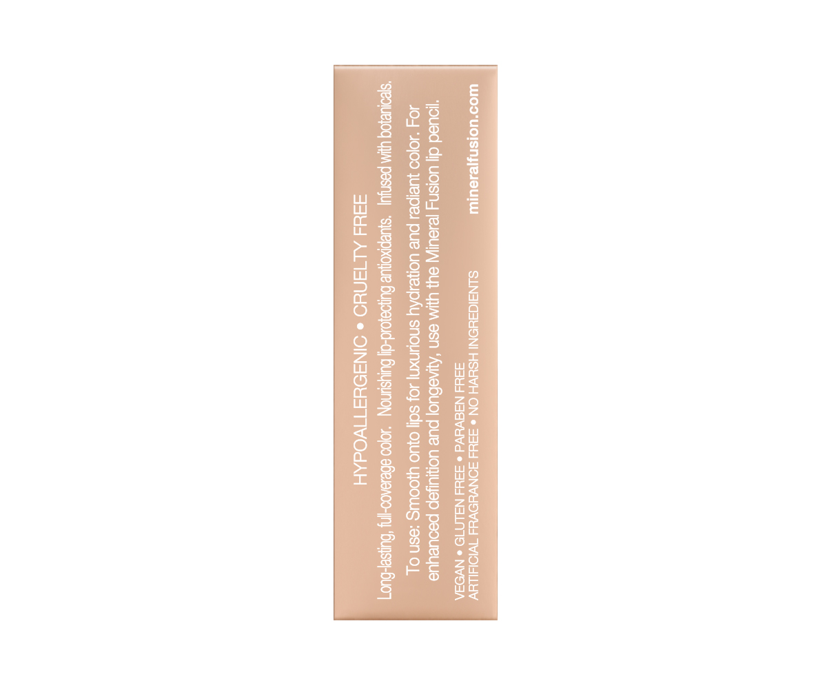 Vivid, smudge-free color. Without all the toxic ingredients, Mineral Fusion’s Lipstick is so ultra-luxurious and buttery smooth thanks to a rich base of Shea Butter and Jojoba Seed Oil that hydrate and condition your lips—all while giving you unforgettably vivid color. Pomegranate, Red Tea and White Tea, plus Vitamin C & E work behind the scenes to protect delicate lips against damage. Shade Description :Nude Beige. All of Mineral Fusion’s products are Hypoallergenic, Cruelty Free, Vegetarian, Gluten Free, No Harsh Ingredients, Fragrance Free, Paraben Free, Phthalate Free.