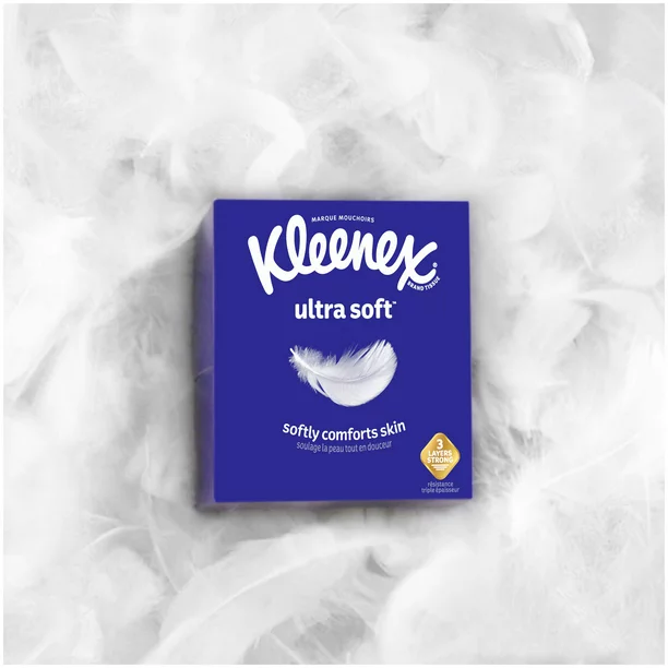 Kleenex Ultra Soft Facial Tissues are soft 3-layer tissues blending indulgent softness with dependable strength. Designed for runny noses and watery eyes, Ultra Soft 3-ply tissues provide a perfect balance of unbeatable softness and strength to comfort skin and help protect your hands. America’s softest Ultra tissue (among national brands) is also the #1 preferred Ultra tissue (vs. Ultra national brands). Kleenex Ultra Soft tissue boxes feature a variety of colors and designs that complement your home decor. Stay stocked up on tissues during cold & flu, allergy, and back-to-school seasons. Skip the store and have Kleenex Ultra Soft facial tissues delivered!