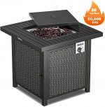 - [Durable Materials & Quality Assurance]Â – The gas outdoor fire table is made of sturdy steel to prevent cracking and damaging the table surface; The burner and control panel are made of stainless steel for longer working life; Ignition device for easy adjustment of flame and simple switch control.